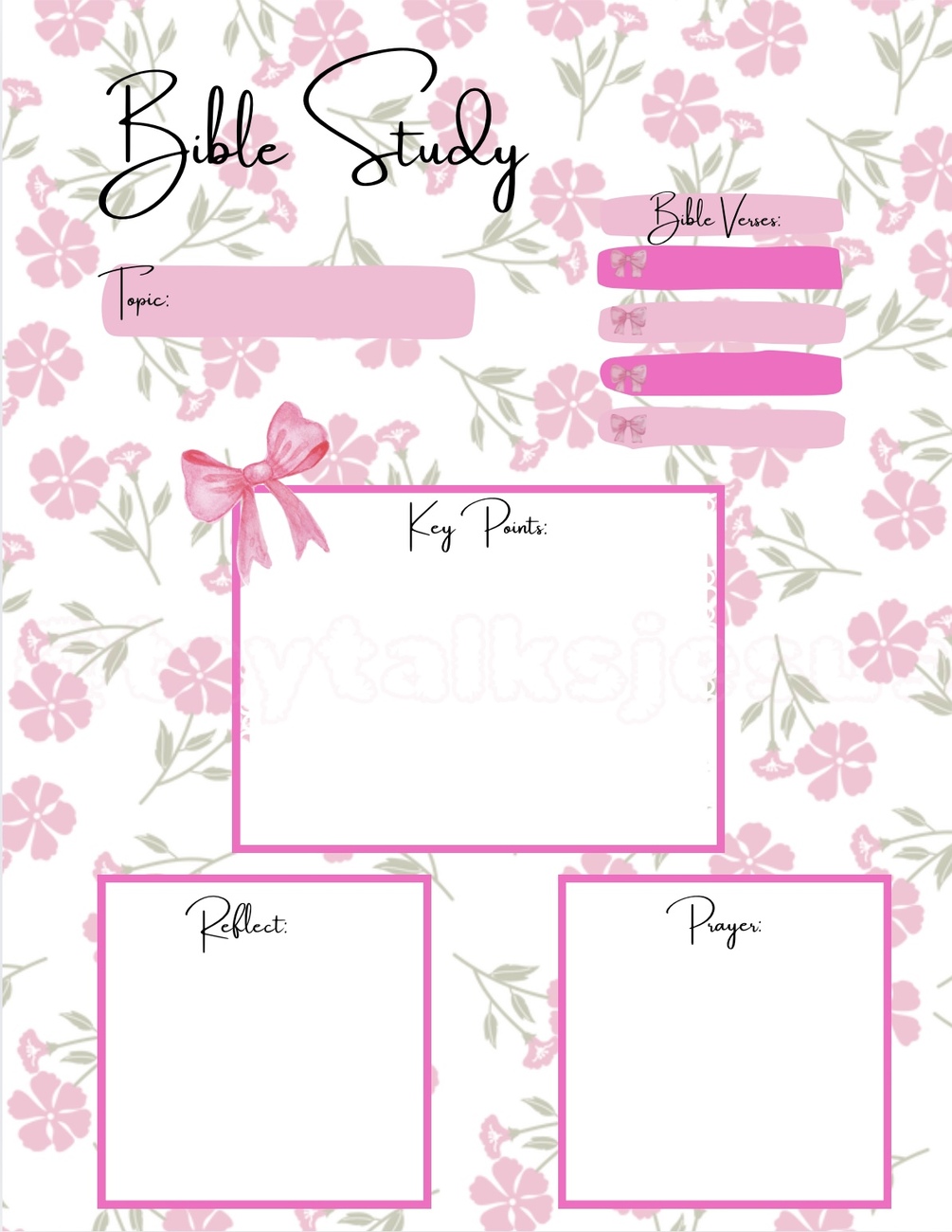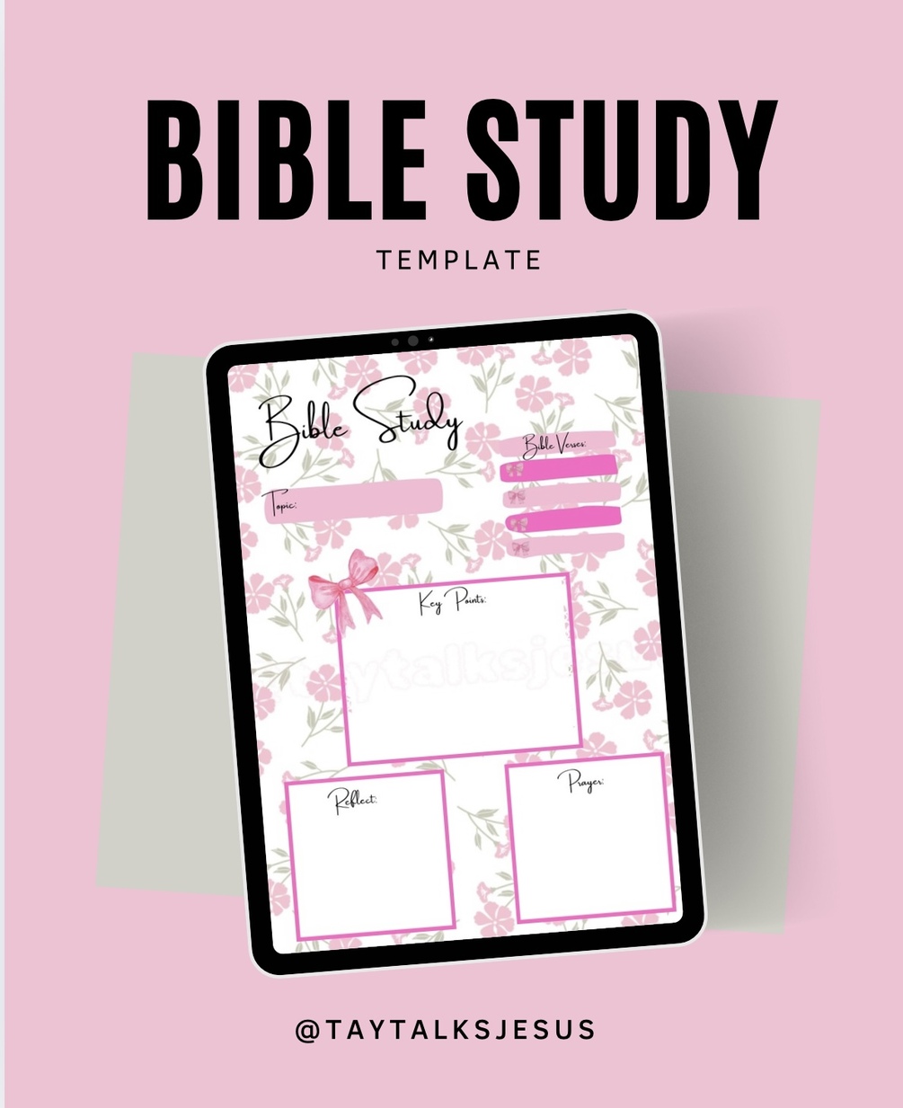 Stay organized and intentional during your time in the Word with this beautifully designed Bible study template! This flexible layout helps you break down scripture, take thoughtful notes, and reflect on what God is teaching you. Whether you're studying a full book of the Bible, a specific passage, or taking sermon notes, this template gives you the space to grow deeper in your faith journey.
